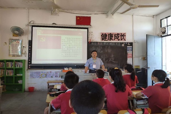 為了加強愛國主義教育,培養(yǎng)學(xué)生對黨旗、黨徽的崇敬之情,6月28日下午,恒美學(xué)校各班上了一節(jié)有關(guān)建黨節(jié)的班隊課,主題是《聽黨話,跟黨走》。學(xué)校全體班主任和學(xué)生們一起共同學(xué)習(xí)。