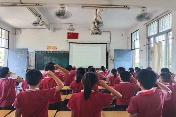 最后,各班孩子都舉起右拳宣誓,大聲喊出誓詞“我是中國人,我是炎黃子孫,龍的傳人,我愛偉大的祖國!我愛偉大,光榮,正確的中國共產(chǎn)黨!我愛勤勞智慧的人民,我愛我的家鄉(xiāng),我愛我的學(xué)校!牢記歷史,振興中華,好好學(xué)習(xí),天天向上。做有理想,有道德,有文化,有紀(jì)律,合格加特長的革命事業(yè)接班人?!蓖ㄟ^鏗鏘有力的吶喊,相信孩子們在今后的學(xué)習(xí)生活中,努力進取,長大后成為社會主義的接班人。