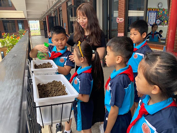 5月25日,復(fù)學(xué)第一天,所有班主任帶領(lǐng)同學(xué)們提前準(zhǔn)備植物小苗或植物種子進(jìn)行種植活動(dòng)。在植物成長(zhǎng)過程中,她們及時(shí)引導(dǎo)同學(xué)們觀察、照顧小植物,并用各種形式記錄植物的成長(zhǎng)過程。