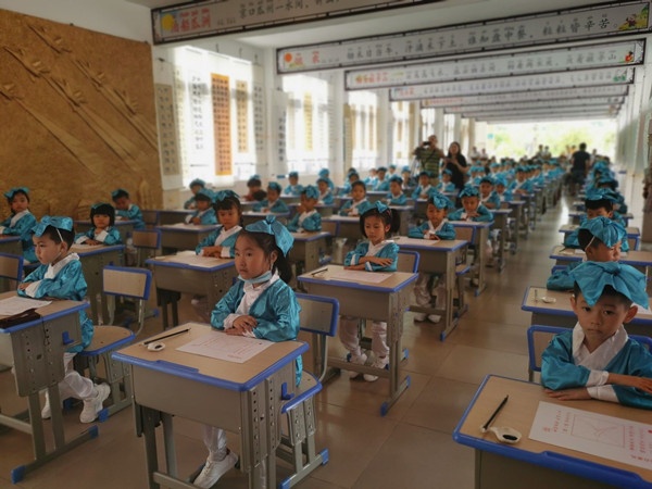 開筆禮,是標志少兒開始識字習禮的一種典禮,是古代讀書人成長過程中的首次大禮,被稱為“人生四大禮”之一。開筆典禮伊始,新生們身著漢服在父母的陪同下就坐,校長吳燕芳作了熱情洋溢的致辭。她先向一年級新生及家長表示最真摯的歡迎和祝賀,殷切希望孩子們可以健康快樂地成長。接著,新生們在禮師的引導下,進行“正衣冠”?!巴芍畬W,始于衣冠”新生們一時捋捋頭發(fā),一時拉拉衣角,有的還互相檢查,十分認真。