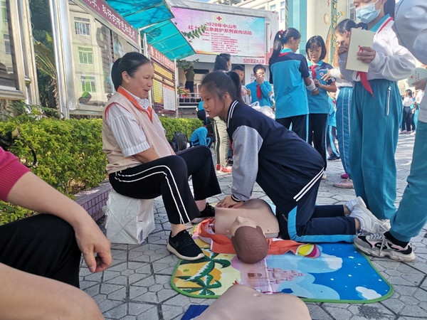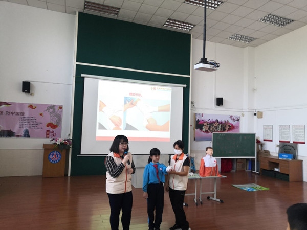 為在校園普及小學(xué)生的衛(wèi)生救護(hù)常識(shí),培養(yǎng)學(xué)生的安全意識(shí),提高自身保護(hù)能力,使學(xué)生掌握自救、互救本領(lǐng),11月12日下午,中山市紅十字會(huì)、人防宣傳教育機(jī)構(gòu)的工作人員來到北臺(tái)小學(xué),為四、五、六年級(jí)的師生開展了一場應(yīng)急救護(hù)宣傳活動(dòng)。