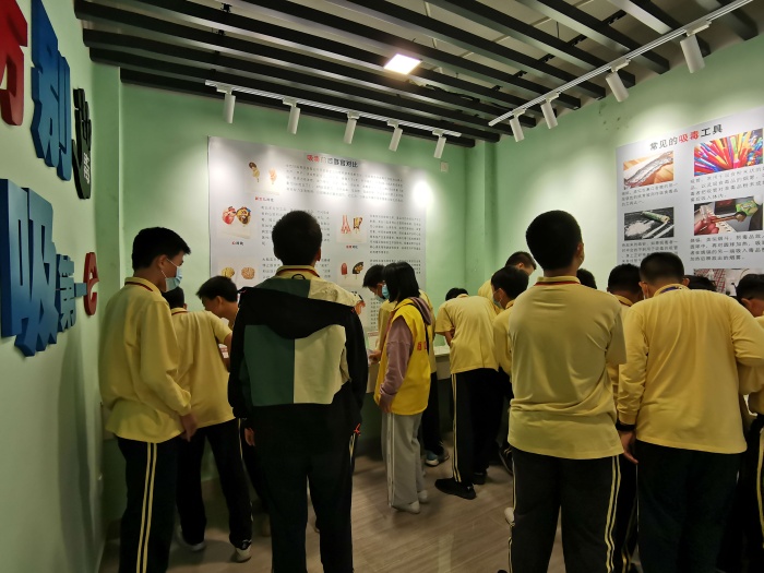 參觀過程中,講解員分別從毒情形勢、毒品樣品展示、禁毒法律法規(guī)、禁毒史實和打擊毒品違法犯罪成果進行了詳細的講述。面對著一幅幅圖片資料和實物展示,同學們?nèi)轿?、多角度地了解了禁毒歷史和毒情形勢,對毒品的危害性和禁毒的必要性有了更為全面的認識。除了認真聽取教育基地工作人員的解說、觀看圖片、實物、視頻,同學們還積極參與禁毒知識搶答,對毒品的性質(zhì)、種類、危害以及南區(qū)近年來的禁毒成果有了更深的了解與認識,進一步意識到保持積極健康的生活方式、提高防毒意識、增強防毒能力的重要性,尤其對新型毒品和濫用止咳水給青少年帶來的危害有了更深的體會。