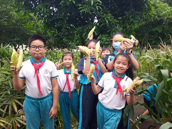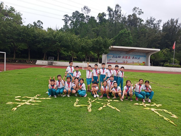 同學(xué)們互相配合,有的負(fù)責(zé)摘玉米,有的負(fù)責(zé)剝玉米,在勞動中感受種植帶來的喜悅。摘完玉米后,有的班級把摘到的玉米擺放成“豐收節(jié)”“喜悅”等字樣,在大操場上拍照留影。學(xué)校家委會也對本次活動大力支持,各家委分工合作,部分家委把玉米帶回家煮熟,有的把玉米榨成玉米汁分給同學(xué)們,還有的同學(xué)自己學(xué)做玉米餅,校園內(nèi)傳遞著豐收的喜悅。