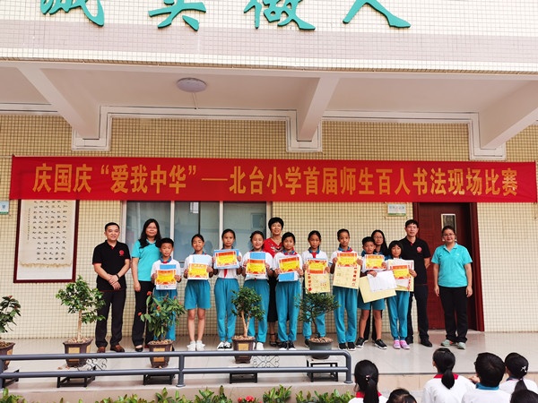 金秋桂月迎國(guó)慶,書(shū)香彌漫愛(ài)中華!為落實(shí)“不忘初心 牢記使命”主題教育,慶祝中華人民共和國(guó)成立70周年,弘揚(yáng)中華優(yōu)秀傳統(tǒng)文化,9月27日,北臺(tái)小學(xué)開(kāi)展“不忘初心 牢記使命”主題教育暨“迎國(guó)慶”師生百人書(shū)法現(xiàn)場(chǎng)比賽。