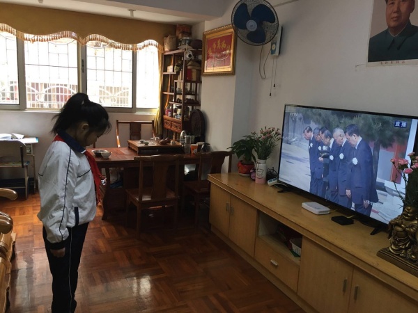 4月4日上午10點(diǎn)整,竹秀園中心小學(xué)全體行政人員及共產(chǎn)黨黨員站立操場(chǎng),現(xiàn)場(chǎng)氛圍嚴(yán)肅而莊重。隨著國(guó)歌的響起,五星紅旗緩緩升起,隨后下半旗。全體人員默哀三分鐘,整個(gè)操場(chǎng)氣氛凝重,整個(gè)校園一片肅靜。孩子們?cè)诩疑泶┬7?、少先?duì)員佩戴紅領(lǐng)巾,心懷敬意志哀。