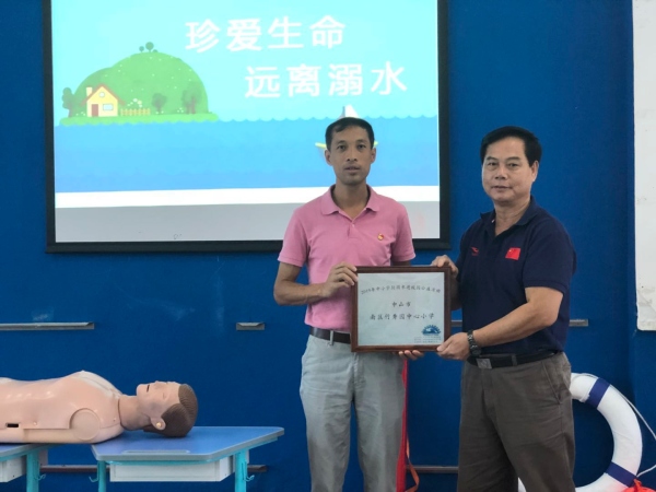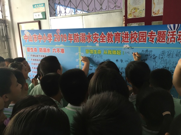 活動(dòng)最后,此次公益講座的主辦方還給竹秀園中心小學(xué)進(jìn)行授牌儀式,與大家互動(dòng)并拍照留念,將此次公益講座活動(dòng)推向了高潮。最后,同學(xué)們?cè)诨顒?dòng)的宣傳畫(huà)報(bào)上簽下了自己的名字,并表示要將今天的學(xué)習(xí)成果傳授給班中的其他同學(xué),并講給家長(zhǎng)和朋友聽(tīng),積極宣傳游泳安全與應(yīng)急自救,大家共同努力,學(xué)會(huì)保護(hù)自己,嚴(yán)防溺水事故的發(fā)生。