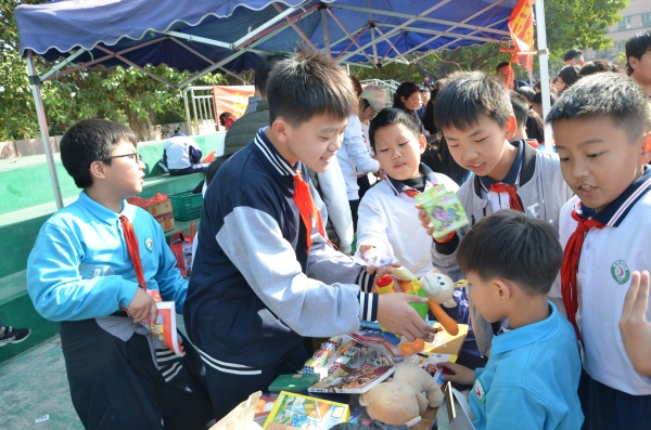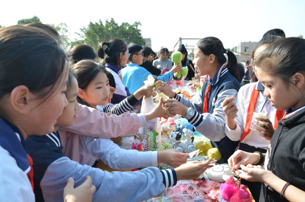 此次愛(ài)心義賣(mài)中,孩子們?yōu)榛I集更多的善款,可謂“八仙過(guò)海各顯神通”。各個(gè)班級(jí)盡心竭力,巧花心思地布置攤位,把自己提前精心準(zhǔn)備的“產(chǎn)品”放在指定攤位最顯眼的位置上,有各類(lèi)課外書(shū)及學(xué)習(xí)用品,有可愛(ài)的玩偶玩具,還有自己親手做的小手工等,東西琳瑯滿目,爭(zhēng)相吸引周?chē)娜藗儊?lái)采購(gòu)。宣傳形式多樣,營(yíng)銷(xiāo)方式也大膽奇特,有的大打折扣,“跳樓價(jià)”甩賣(mài)吸引顧客的目光;有的“流動(dòng)商家”帶上自己的“產(chǎn)品”到處找尋購(gòu)買(mǎi)者;有的抽獎(jiǎng)、玩游戲,趣味十足。同學(xué)們爭(zhēng)相選購(gòu)自己心儀的物品,盡己所能獻(xiàn)愛(ài)心、行善舉。