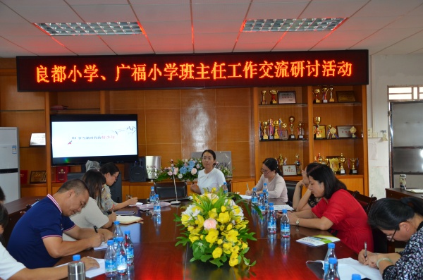 10月25日下午,板芙廣福小學(xué)所有班主任在蘇雪霞校長和黃錦副校長的帶領(lǐng)下來到南區(qū)良都小學(xué)進(jìn)行班主任工作交流研討。