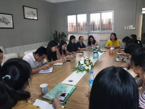 會議開始,首先各位新教師就入職以來的進步與不足或近段時間教育教學(xué)中遇到的難題、困惑等進行了分享。各教師分享后,陳莉江主任對新老師提出疑問和認真反省自己的態(tài)度表示高度欣賞。同時,陳主任還對新教師提出了以下幾個方面的要求:一是落實常規(guī)教學(xué);二是鼓勵新老師積極主動學(xué)習(xí)來提升自我,珍惜每次外出學(xué)習(xí)機會,并且指出新教師對待教師職業(yè)要有情懷,要有追求,在教育教學(xué)的路上不能懈怠,也鼓勵新教師積極參加各種教學(xué)比賽來提升自己的教學(xué)能力。吳麗歡主任也在會上發(fā)言,她的語言幽默并具有感召力,號召年輕老師們積極進取、大膽創(chuàng)新,讓青春在奮斗中散發(fā)光彩。