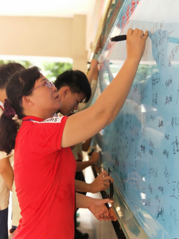 在萬老師的帶領(lǐng)下,初三學(xué)子集體鄭重宣誓:“為中考而戰(zhàn),為理想而博,我準(zhǔn)備好了”,萬老師不忘勉勵全體同學(xué)樹立自信,潛心備戰(zhàn),以飽滿的熱情和激昂的斗志沖刺中考,全力奮戰(zhàn)49天,給自己一個青春無悔,實現(xiàn)學(xué)校2020中考新的勝利!最后,學(xué)校行政及初三全體師生在簽名榜鄭重寫下了自己的名字,以表決心。