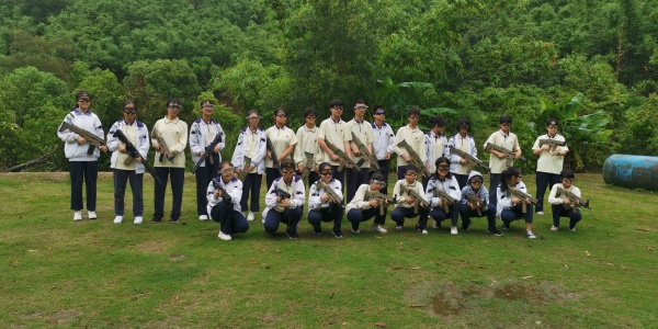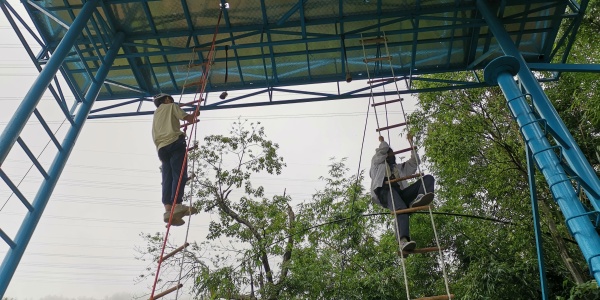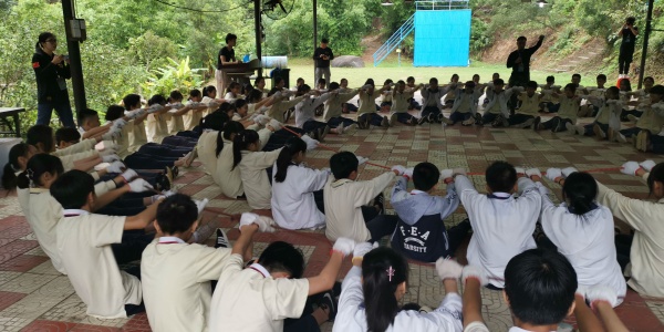 參觀完中山市革命史跡陳列館,同學們就前往中山市綠色戶外運動拓展訓練基地,參加拓展訓練營的活動。在拓展訓練營里,教官們?yōu)橥瑢W們精心設計了豐富多彩的訓練拓展活動,包括有集體圓形扯大繩、爬繩梯、叢林野戰(zhàn)等等。在協(xié)作互助、緊張刺激、或實或虛的游戲體驗中,同學們收獲了成長的幸福和喜悅。