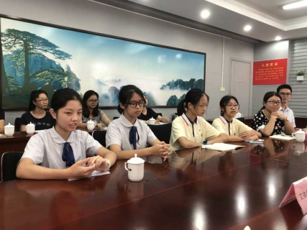 良都中學(xué)德育處副主任陳嫣桃首先作了發(fā)言,她從一次辯論會的故事開始講起,提出學(xué)校在培養(yǎng)良知良行、向真向善、落落大方的良中人方面進行的有益探索,提出要增強學(xué)生的內(nèi)在修養(yǎng)自信、文化水平自信、視野開拓自信,通過自主管理、團隊凝聚、主題教育、精彩活動等幾個方面實現(xiàn)學(xué)生在言行舉止上落落大方;初二7班李柏玲和初二2班林靜同學(xué)也分別分享了自己在參加學(xué)校的團隊活動中收獲的成長點滴,在觀看了習(xí)近平總書記的系列講話視頻后,他們也提出一定要努力學(xué)習(xí),完善自我,以更優(yōu)秀的接班人的姿態(tài)承擔歷史的重任;池海旻老師從美育的角度出發(fā),結(jié)合南區(qū)僑鄉(xiāng)建筑的寶貴資源開展學(xué)生愛國愛鄉(xiāng)教育,通過攝影、美術(shù)作品等載體,展現(xiàn)僑鄉(xiāng)風(fēng)土人情、增強接班人的民族自尊心、民族文化的自信心和自豪感;溫婷婷老師從《流浪地球》同名電影郭帆追夢的故事引入,分享了自己教育追夢的經(jīng)歷,鼓勵班級學(xué)生敢于有夢、勇于追夢、勤于圓夢,并給他們制定了三年的發(fā)展規(guī)劃:初一樹立夢想、初二追夢、初三圓夢;團委書記陳樂貞也分享了自己假期出游多個國家后對比產(chǎn)生的感受以及曾在良都中學(xué)任教的外籍老師對擴建后的良都中學(xué)辦學(xué)環(huán)境和條件的肯定贊賞,表達了作為中國人的滿滿幸福感以及她在開展團工作尤其是宣講團課過程中,采用多種形式吸引團員積極參與,受到團員們的熱捧……良都中學(xué)師生代表的發(fā)言獲得了在場領(lǐng)導(dǎo)、老師的好評。
