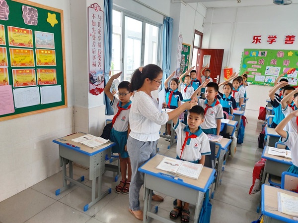 北臺小學(xué)16個中隊參加了此次活動,活動由大隊輔導(dǎo)員莫冰組織。下午隊會課上,各中隊輔導(dǎo)員引領(lǐng)全體少先隊員整理佩戴好紅領(lǐng)巾、敬隊禮,并認(rèn)真檢查每一位少先隊員敬隊禮的細(xì)節(jié)。大隊輔導(dǎo)員莫冰、德育副主任劉雪花和兩位音樂老師擔(dān)任本次活動的評委,對各個中隊檢查并評分?;顒又校u委老師耐心地對隊員敬禮姿勢作了點(diǎn)評和指導(dǎo),并勉勵各中隊要努力學(xué)習(xí),做一名優(yōu)秀的少先隊員。少先隊員們莊嚴(yán)肅穆地行隊禮,用飽滿的熱情歌唱《中國少年先鋒隊隊歌》,鮮艷的紅領(lǐng)巾飄揚(yáng)在前胸,看到了蓬勃的少先隊,看到了祖國的花朵在努力向上生長!