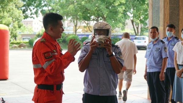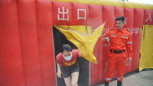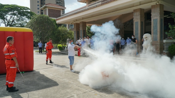 培訓(xùn)第二項內(nèi)容是室外實踐,由居安消防職業(yè)培訓(xùn)學(xué)校的教官歐文獻、黎浩林執(zhí)教,課程包括防火面具的使用、逃生帳篷火災(zāi)逃生、手提式干粉滅火器的檢查及使用方法等。在授課中,理論結(jié)合實際,現(xiàn)場做了示范,讓所有人都參與了實際演練,從使用滅火器到逃生屋模擬活動中,大家都積極參與活動,氣氛高漲。