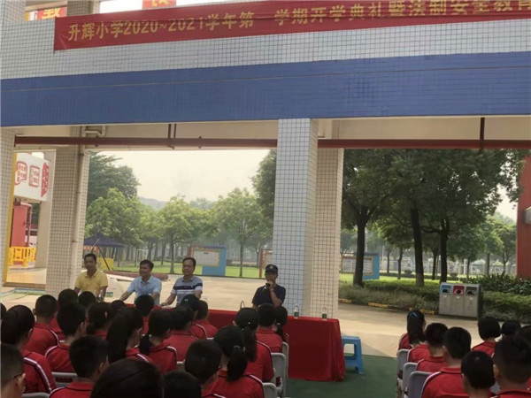 典禮上南頭鎮(zhèn)關(guān)工委副主任黃祺宗爺爺為開學(xué)典禮致辭,在振奮人心、語重心長的話語中,他對老師們和同學(xué)們寄予了殷切期望。隨后升輝派出所民警何榮彬警、南頭鎮(zhèn)交警大隊宣講員鐘警員和南頭鎮(zhèn)消防中隊副隊長王曉和羅俊昌消防員分別對孩子們進(jìn)行自我保護(hù)安全教育、交通安全教育和消防知識教育,希望孩子們在新的學(xué)期能夠健康成長,做一個守法懂法的好孩子、好公民!