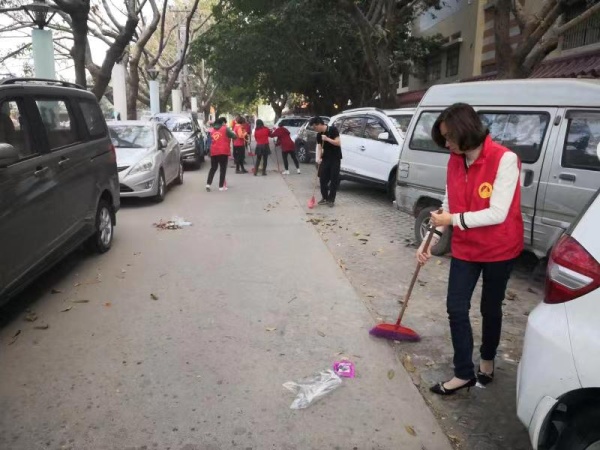 活動中,黨員們熱情洋溢,不怕臟、不怕累,沿著學校前后門開始打掃,將路上落葉、枯枝、泥土、垃圾清掃干凈。黨員們熱情高漲,以勞動為榮,樂在其中。