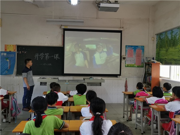 首先,石軍小學(xué)全體師生在大隊輔導(dǎo)員梁毅強老師主持下進行新學(xué)期第一次升旗儀式。隨著莊嚴(yán)肅穆的國歌聲,鮮艷的五星紅旗徐徐升起,拉開了開學(xué)典禮的序幕。