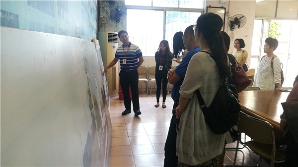 在梁校長的陪同下,來訪團首先參觀了石軍小學的校園環(huán)境,并觀摩了師生書畫展。來訪團一邊參觀,一邊交流,一邊駐足,一邊拍照,對石軍小學濃郁的校園文化氛圍無不表示稱贊。