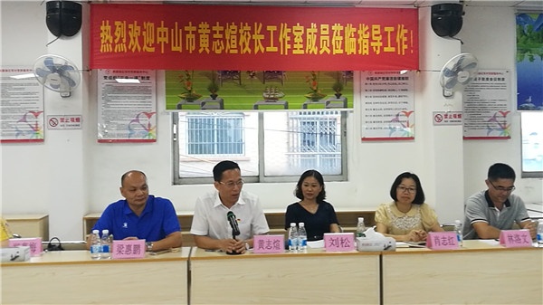 2019年6月5日下午,中山市黃志煊校長工作室成員一行來到石軍小學進行參觀和研討活動,梁蔚菁校長、譚旭其主任等行政熱情迎接來訪團的到來。