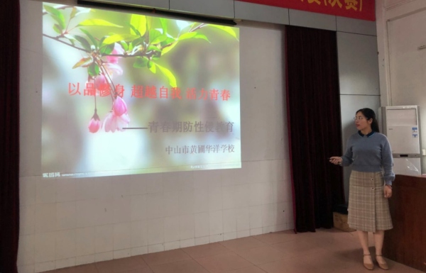 2019年3月29日,黃圃華洋學(xué)校組織初中部150多名女生,在階梯室開展以“以品修身,超越自我,活力青春”為主題的專題講座。講座由學(xué)校德育處李夢桃助理主講,艾明淑主任出席了活動(dòng)。