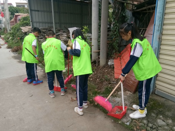 活動(dòng)開始,少先隊(duì)員們興高采烈地拿著勞動(dòng)工具,一個(gè)個(gè)精神抖擻,不怕臟不怕累,爭先恐后干得熱火朝天。有的拿著掃帚清理道路,有的拿著鏟子鏟粘地面比較緊不易打掃的垃圾,還有的同學(xué)兩人一組抬著垃圾桶來回的搬運(yùn)著垃圾,同學(xué)們個(gè)個(gè)手腳并用,將一處處的垃圾清掃一空,老師們也身先士卒,參與到活動(dòng)中來,同學(xué)們見狀更是倍受鼓舞,干得更加積極,師生共同努力,掃得不亦樂乎,街道上、衛(wèi)生死角里到處都可以看見揮舞著的掃把和同學(xué)們辛勤的汗水,現(xiàn)場(chǎng)秩序井然,氣氛熱鬧非常。通過同學(xué)們近一個(gè)小時(shí)的努力,路上展現(xiàn)出一番新的亮麗景象,周邊的村民們也露出了贊許的目光。