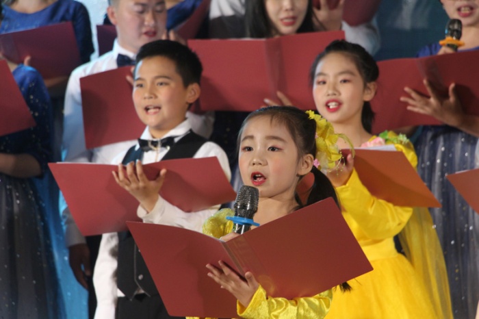 霓虹燈下音樂(lè)起,一曲由華曉芳副校長(zhǎng)和學(xué)校鑫夢(mèng)之聲合唱團(tuán)帶來(lái)的《歌唱三鑫》合唱點(diǎn)燃了慶典的氣氛,在全體合唱團(tuán)成員的和諧配合中,一幕幕動(dòng)人的情節(jié)、一個(gè)個(gè)可歌可泣的故事躍然心間,感人肺腑!十年,彈指一揮間,在奮斗與輝煌交輝中,我們仿佛看到了一代三鑫人的團(tuán)結(jié)與創(chuàng)新,看到了三鑫一路走來(lái)的腳印一串串……
