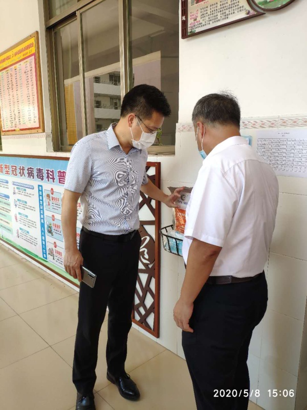 檢查組對第二批學(xué)生返校準(zhǔn)備工作資料和疫情防控現(xiàn)場進(jìn)行仔細(xì)核查,著重對課室和學(xué)生宿舍疫情防控工作進(jìn)行指導(dǎo)。實(shí)地檢查后,藍(lán)海斌同志聽取了學(xué)校工作匯報(bào),他肯定了初級中學(xué)開學(xué)防疫準(zhǔn)備工作,認(rèn)為學(xué)校各項(xiàng)準(zhǔn)備工作扎實(shí)、細(xì)致。他要求學(xué)校要將防疫工作常態(tài)化,壓實(shí)責(zé)任,落實(shí)責(zé)任到人,決不可掉以輕心。