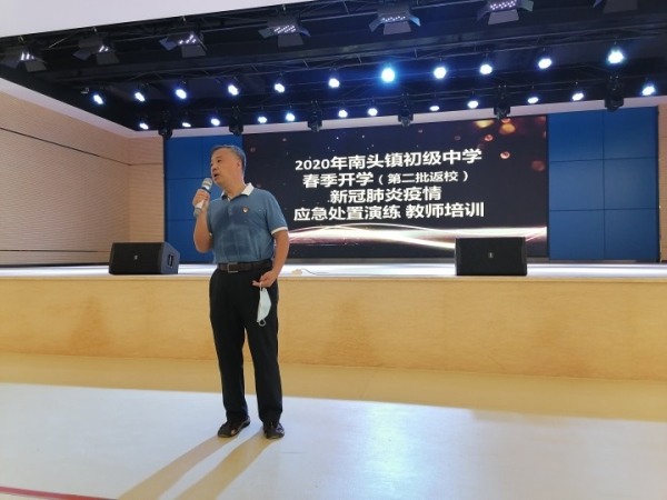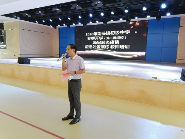 在第一批高三、初三學生順利返校,以及第二批師生核酸檢測完成的前提下,5月11日,中山市高一、高二,初一、初二學生返校,南頭鎮(zhèn)初級中學第二批教師于5月6日返校進行工作準備。2020年5月6日上午,南頭鎮(zhèn)初級中學開展第二批返校教師疫情防控培訓,初一、初二級全體教師參加培訓,培訓由毛賢偉副校長主持。