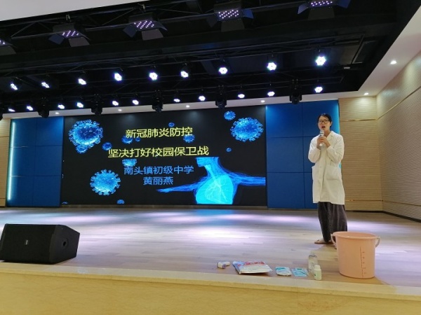 最后,學校校醫(yī)對教師們進行了專題培訓,內容包括新冠肺炎的了解、師生員工個人防護、學校防控管理、健康防護技能等四大方面就新冠肺炎傳染途徑、校園個人衛(wèi)生、環(huán)境清潔衛(wèi)生、日常預防性消毒、隨時消毒、終末消毒、常見消毒劑及配置、學校復課后日常防控措施、學校重點場所防控指引、預案的制定和應用等方面。