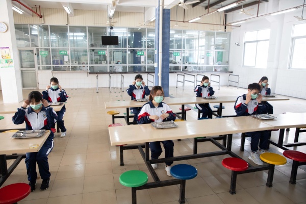 拍攝場景三是學(xué)生到洗手池按“七步洗手法”使用洗手液徹底清潔雙手,按地面標(biāo)識排隊(duì)點(diǎn)餐,就餐時,不交流。用餐結(jié)束后,佩戴好口罩,將餐具和剩飯剩菜分類送到相應(yīng)的回收處。此外,學(xué)校把“七步洗手法”作為拍攝重點(diǎn),并錄制視頻提供給廣大師生學(xué)習(xí)。