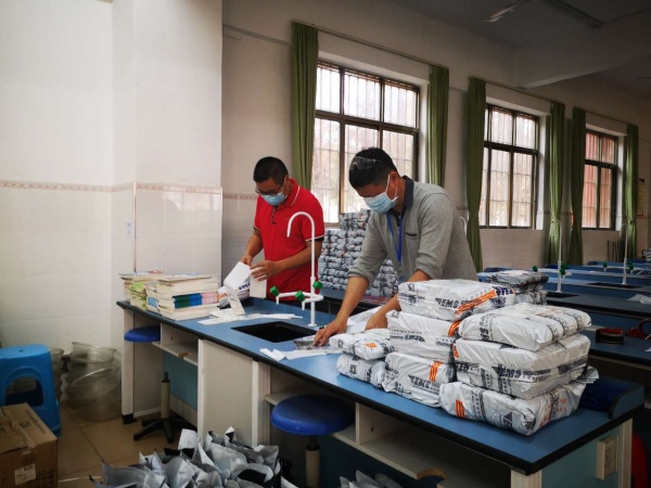 為了能安全地將課本送到學(xué)生手中,學(xué)校決定采用郵政速遞的方式進(jìn)行發(fā)放。首先,2月26日總務(wù)處聯(lián)系郵政速遞負(fù)責(zé)人,洽談相關(guān)事項(xiàng),然后擬定、發(fā)放致家長(zhǎng)一封信,征詢家長(zhǎng)意見,并于27日上午12點(diǎn)完成對(duì)需要快遞教材學(xué)生數(shù)量的統(tǒng)計(jì)。接著,徐主任組織后勤工作人員把書本按照一生一袋進(jìn)行分裝打包。學(xué)生數(shù)量多,打包工作量大,學(xué)校工作人員加班加點(diǎn)進(jìn)行分裝打包,并且部分熱心家長(zhǎng)積極參與到課本打包過程中,因而大大加快了此項(xiàng)工作的速度。終于,在眾人的支持下,學(xué)校僅用三天就完成此項(xiàng)工作。