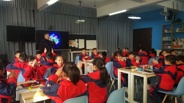 爾后,在“感受音樂 多彩世界”的三年級原創(chuàng)繪畫校本課堂上,譚老師帶著孩子們聽音繪點連線畫面,輔以冷暖色調(diào)的指導,音樂與美術(shù)的學科融通,老師與學生的心靈契合,精心勾勒的語言之美與生活之美,為學生“一人一葉舟,千人千帆競”的理想登岸成功而奠基。在一年級的“口才小達人”校本課堂上,充滿了歡聲笑語,從“囗腔氣息訓練”到“表情訓練”再到“小小繞口令”諸環(huán)節(jié),孩子的活潑善良,教師的親切真誠,讓我們?yōu)橹畠A心。兩節(jié)平凡的校本課堂,傳遞的卻是非凡的人生力量。