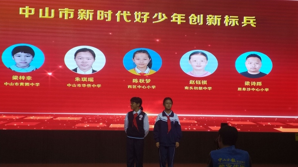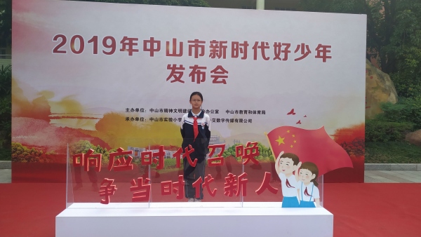 11月26日下午,由中山市文明辦、市教體局組織舉辦的新時(shí)代好少年發(fā)布會(huì)在中山市實(shí)驗(yàn)小學(xué)體育館一樓舉行。本次發(fā)布會(huì)共頒發(fā)了 “美德標(biāo)兵”、“才藝標(biāo)兵”、“智慧標(biāo)兵”、“創(chuàng)新標(biāo)兵”等四類好少年榮譽(yù)證書。全市一共19名中小學(xué)生獲得此榮譽(yù)。其中南頭鎮(zhèn)初級(jí)中學(xué)初一(4)班學(xué)生趙鈺祺榮獲中山市新時(shí)代好少年“創(chuàng)新標(biāo)兵”稱號(hào)。