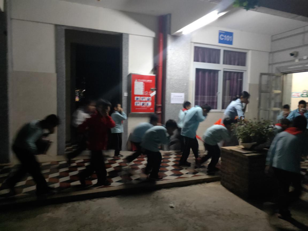 隨著警報(bào)響起,正在宿舍進(jìn)行浴后清理的學(xué)生,在德育老師的組織帶領(lǐng)下,按照各個(gè)宿舍疏散逃生路線有序快速撤離宿舍樓,以最快的速度逃生到籃球場。全校師生安全有序撤離至安全區(qū)域,德育老師立即清點(diǎn)人數(shù)并向升旗臺的主管老師匯報(bào)安全到達(dá)人數(shù)。生活區(qū)主管陳筱明老師對此次演練進(jìn)行了總結(jié)。她對本次消防演習(xí)活動給予肯定,同時(shí)指出本次演存在的問題,希望同學(xué)們珍惜生命,尊重每一次的演練。生命只有一次,只有端正態(tài)度,掌握正確的逃生方法,才能在險(xiǎn)情真正來臨時(shí)做到安全逃生。警報(bào)解除后,各班有序返回教室,演練圓滿結(jié)束。