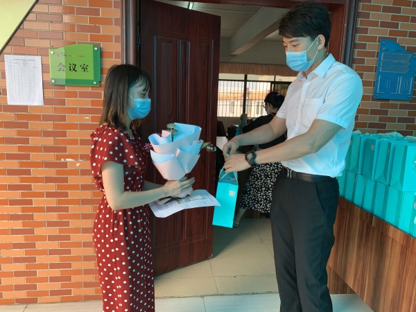 考慮到經(jīng)歷了漫長的假期和居家辦公,老師們返校辦公可能會有些不適應(yīng),集團(tuán)董事會和學(xué)校精心為每一位老師準(zhǔn)備了一個儀式感滿滿的上班儀式。在會場門口,兩位高大帥氣、青春靚麗的“司儀”給每一位進(jìn)入會場的老師鄭重遞上一份精美、別致的禮物——一束美麗的鮮花和一個禮品袋,此情此景,對于疫情過后第一天返校上班的老師們來說,除了滿心的驚喜就是深深地感動了,這個如此意義非凡、如此隆重的上班儀式一定會留在記憶里,成為他們最美好的回憶!