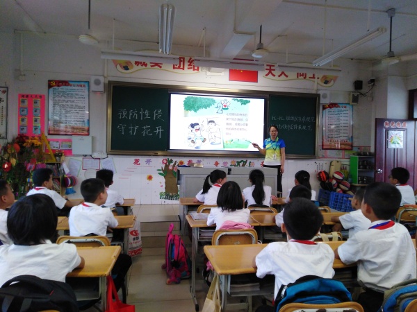 在班會課上,班主任就圍繞“認識我們的身體”、“分辨和防范性侵害”、“遇到性侵害時該怎么做”三個方面展開了今天的主題班會。班主任結(jié)合多媒體設(shè)備,通過模擬示范、游戲互動、案例剖析等形式,讓孩子們了解自己身體的隱私部位,懂得何為性侵害;引導孩子辨別性侵害行為,并告訴孩子們要擦亮眼睛看清身邊人的行為,不要因為對方是熟人就放松警惕;教育孩子們遭遇性侵犯后如何自護自救及尋求幫助,引導學生樂觀勇敢地面對困難,熱愛生活,珍愛生命。