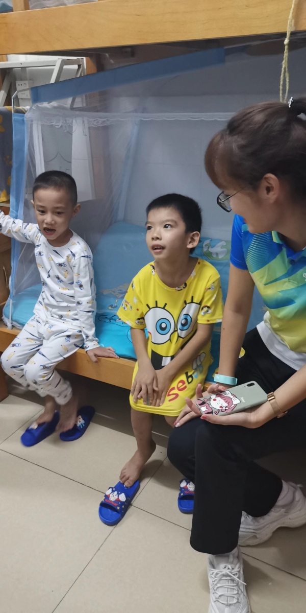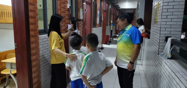 此次參與新生宿舍走訪活動(dòng)的還有南頭華暉學(xué)校校長李明勇先生、副校長鄭堪文先生、副校長龐天明先生以及學(xué)校一眾行政領(lǐng)導(dǎo)、學(xué)校一二年級(jí)住宿班班主任和學(xué)校部分青年教師。進(jìn)行宿舍走訪活動(dòng)前,由學(xué)校后勤助理岑守添老師對(duì)本次活動(dòng)進(jìn)行講解和宿舍安全教育培訓(xùn)。進(jìn)宿舍后,孩子們看見老師來了都顯得非常興奮,每個(gè)宿舍都開始熱鬧起來。有的老師在宿舍里傾聽見天孩子們?cè)趯W(xué)校里的趣事;有的在宿舍里指導(dǎo)孩子們?nèi)绾胃玫財(cái)[放個(gè)人物品;有的幫孩子們吹頭發(fā);孩子們甚是高興。孩子們都在認(rèn)真聆聽老師們的教導(dǎo),宿舍里傳來陣陣溫暖的笑聲。