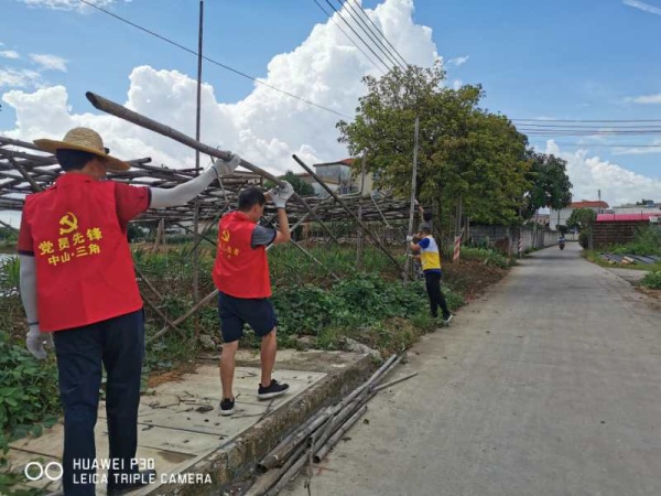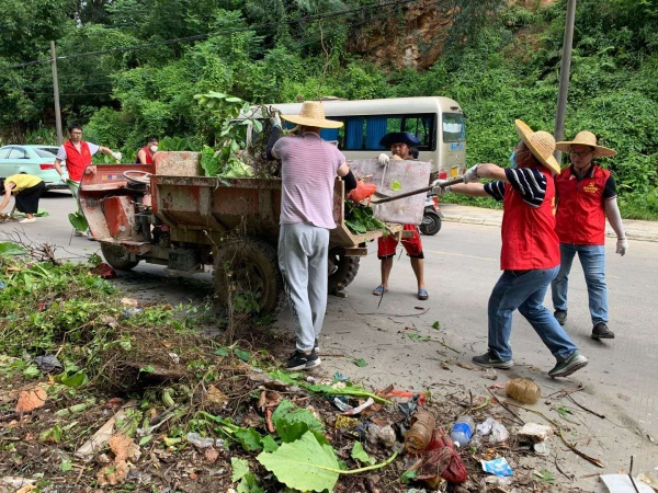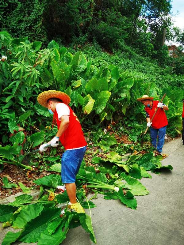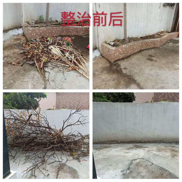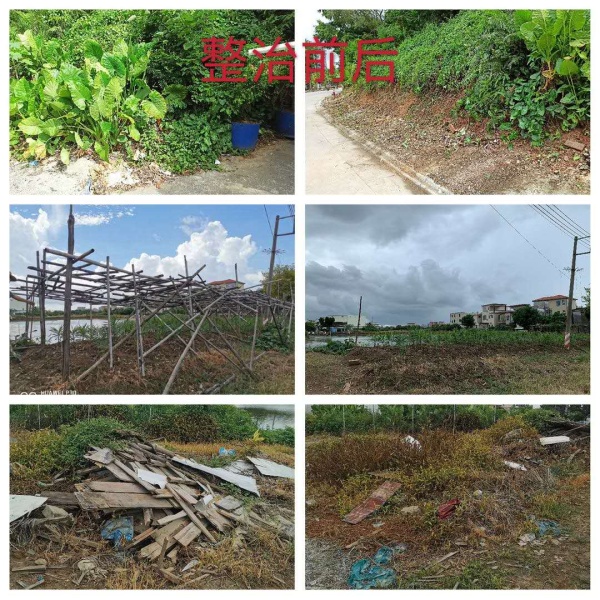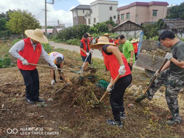 當(dāng)天早上時(shí)而烏云密布,時(shí)而晴天,時(shí)而下起小雨,仿佛為“戰(zhàn)斗”增添了氣氛。8:30分,同志們整裝待發(fā),草帽、手套、手襪、口罩等保護(hù)物品齊上陣;掃把、鐵鏟、鋤頭、鐵耙、砍刀等勞動工具火速到位。9:00隨著領(lǐng)導(dǎo)一聲令下,大伙兵分兩路從東南村府出發(fā),奔赴火熱的“勞動基地”。其中一支隊(duì)伍負(fù)責(zé)清拆亂建棚舍,另一支隊(duì)伍清理村民房前屋后積存的垃圾雜物。