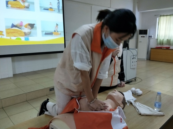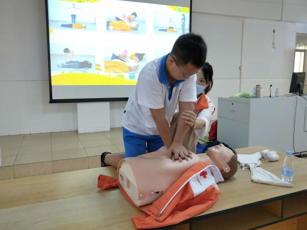 培訓老師先用生動有趣的語言,真實的案例,給師生們做了理論知識的講解。老師講解了生活安全、消防安全、地震防范、中暑急救、溺水救援等內(nèi)容,并講解了心肺復(fù)蘇、人工呼吸等常見急癥、意外傷害的救護原理及技術(shù)手段,同時介紹了急救的原則、目的、程序、自我保護等諸多方面的理論知識。接著模擬現(xiàn)場的方式圍繞防溺水事件、日常生活突發(fā)事件向?qū)W生介紹了緊急救護技巧、呼救和撥打報警電話技巧和遇到突發(fā)情況時自救和互救的方法。最后現(xiàn)場示范了心肺復(fù)蘇基本技能等應(yīng)急救助技巧,并邀請了部分同學演示防范方法和急救技能。整個培訓過程氣氛活躍,掌聲不斷。