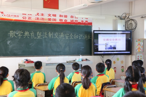 典禮在莊嚴(yán)而肅穆的升旗儀式中拉開序幕。為提高學(xué)生假期的安全防范意識,高平小學(xué)特邀三角鎮(zhèn)交警大隊(duì)馮潤文警官為同學(xué)們做交通安全宣傳講座。馮警官用簡單易懂的語言和典型的事故案例,為同學(xué)們敲響警鐘,提醒同學(xué)們始終將交通安全牢記心上,落實(shí)到行動,提高防范意識,遠(yuǎn)離交通事故。