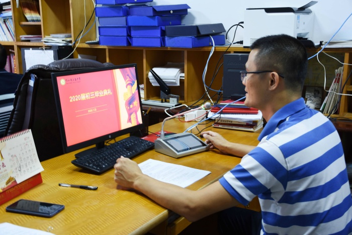 首先,初三級長何志楊老師代表全體初三教師給2020屆畢業(yè)生送上畢業(yè)寄語和祝福,希望同學們中考取得出色的成績,順利進入理想的高中或中專。他還通知學生23日網(wǎng)上召開釘釘直播家長會,以指導同學們報考學校。