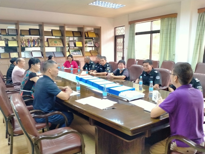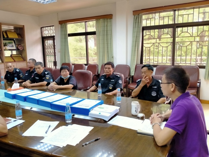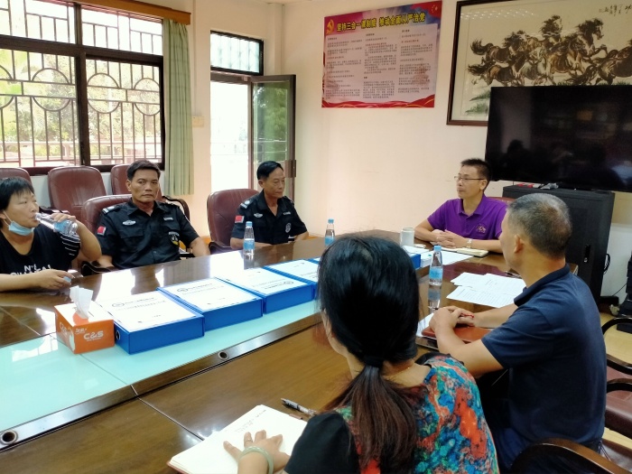 會議上,首先由德育處林秋影主任組織大家學(xué)習(xí)了《保安人員工作職責(zé)》,林主任從進校測溫登記制度,應(yīng)急處置,儀容儀表等幾個方面對保安人員進一步提出要求,明確工作要求和崗位職責(zé),加強巡查,努力消除校園安全隱患。