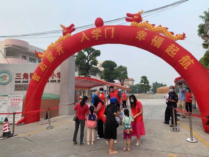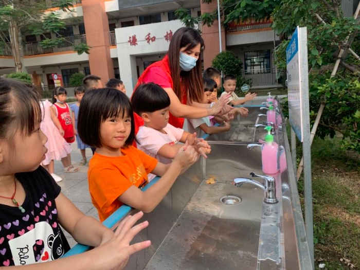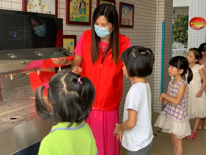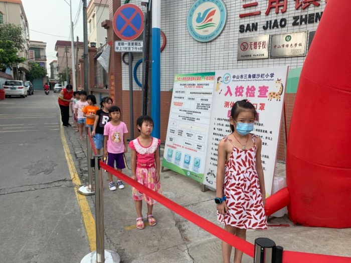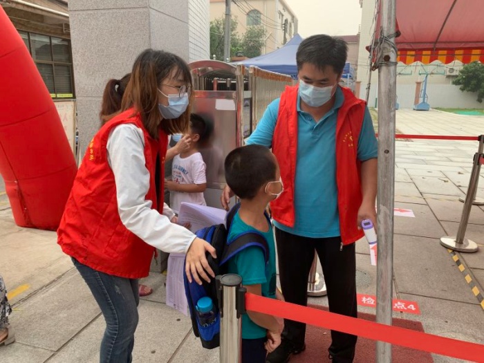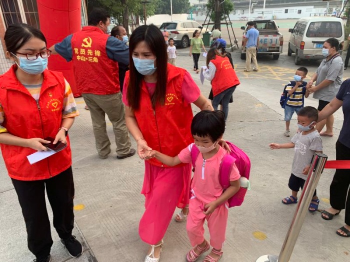 早上7點(diǎn)15分,沙欄小學(xué)崔煥英校長(zhǎng)親自帶領(lǐng)黨群志愿者們?cè)缭缯驹谛iT口準(zhǔn)備好迎接一年級(jí)的小朋友,一年級(jí)的班主任以及科任老師也早已在教室里等候?qū)W生。家長(zhǎng)們帶著孩子陸續(xù)來到校門口,黨群志愿者們從家長(zhǎng)手里接過孩子,帶著孩子測(cè)量體溫,用免洗消毒液洗手,然后由另一個(gè)志愿者手牽手帶著學(xué)生到班級(jí)交給班主任。緊接著,崔煥英校長(zhǎng)與班主任們帶領(lǐng)一年級(jí)新生熟悉上學(xué)進(jìn)校門要在指定路線站黃點(diǎn)排隊(duì)等候,人與人之間相隔一米的距離,進(jìn)入校門后去洗手盆洗手。崔煥英校長(zhǎng)親自為一年級(jí)新生示范“七步洗手法”,親自帶領(lǐng)學(xué)生到飲水機(jī)示范接水的步驟。