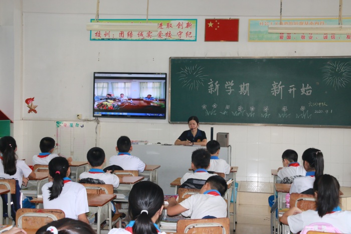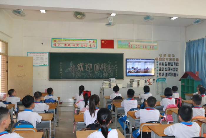 出于疫情防控需要,三角小學(xué)新學(xué)期開學(xué)典禮通過釘釘視頻會議的形式進(jìn)行,由許嘉天主任主持,陳見洪校長、王輝副校長和三角公安分局沙欄派出所梁吉慶警官出席典禮,師生們在各班教室認(rèn)真觀看。