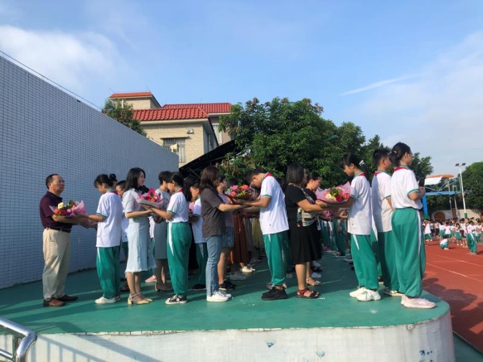 活動的第一個環(huán)節(jié),學(xué)生們手捧崔煥英校長為各位老師精心定制的鮮花,滿懷敬意地獻(xiàn)給可親可敬的老師。全校48位老師接過代表學(xué)生們真摯的祝福、衷心的感謝的鮮花,美麗的笑容在他們臉上綻放,幸福的感動在他們心中流淌。第二個環(huán)節(jié),由全校學(xué)生齊唱著《感恩的心》,以表達(dá)對老師諄諄教誨的感激之情,場面十分震撼。