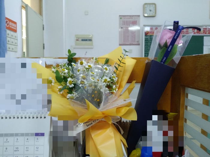 早上大課間期間,學(xué)校德育處張主任發(fā)表了“感念師恩”的倡議。也為老師們送上祝福。各班黑板上都寫上了深情的祝福語(yǔ),“老師,您辛苦了!”“用語(yǔ)言播種,用彩筆耕耘,用汗水澆灌,用心血滋潤(rùn),祝福您,我最敬愛的老師!”“天涯海角有盡處,只有師恩無(wú)窮期”……每一句祝福都表達(dá)了學(xué)生對(duì)老師最崇高的敬意。此外,很多班級(jí)自發(fā)為各科任教師獻(xiàn)上了小禮物,一張卡片,一支筆,一盆植物,都表達(dá)了學(xué)生對(duì)老師的感激。