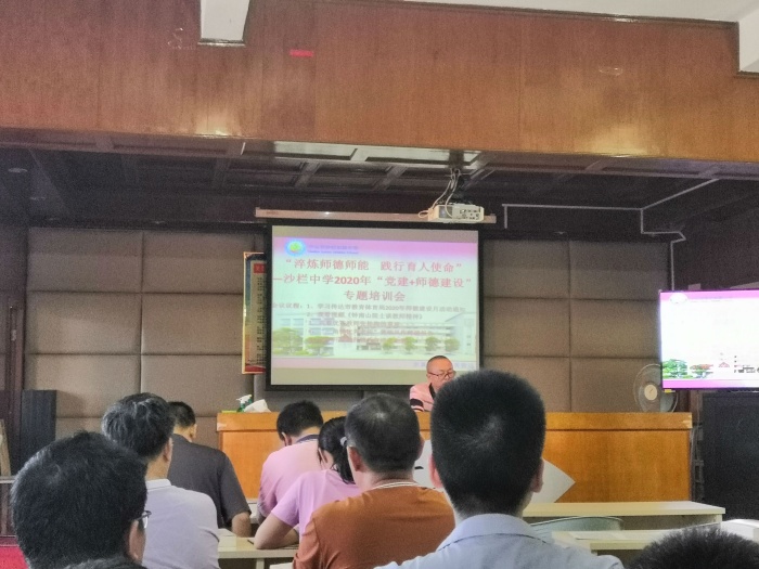 為加強(qiáng)師德師風(fēng)建設(shè),錘煉一支師德高尚、素質(zhì)過(guò)硬的教師隊(duì)伍。 9月16日下午,沙欄中學(xué)全體教師在和美樓舉行了“黨建+師德建設(shè)”專(zhuān)題培訓(xùn)會(huì)。會(huì)議由德育處張成斌主任主持。