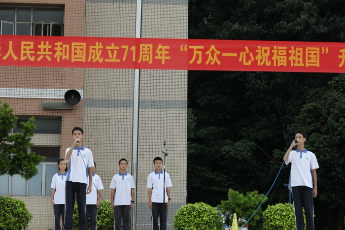 為熱烈慶祝中華人民共和國成立71周年,強化愛國意識,認清職責使命,弘揚偉大中華民族精神,踐行社會主義核心價值觀,三角中學全校師生共同進行“萬眾一心·祝福祖國”大型升旗儀式活動!