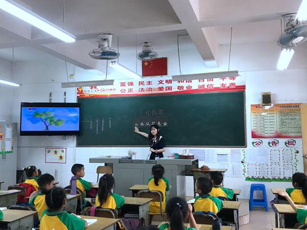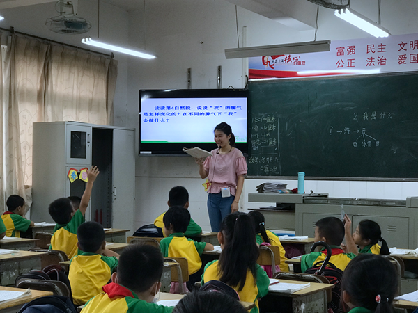 歐陽(yáng)佩君老師執(zhí)教一年級(jí)《對(duì)韻歌》,教學(xué)儀態(tài)從容,娓娓道來(lái),課堂紀(jì)律井然有序,讓學(xué)生在輕松的氛圍中識(shí)字學(xué)文;并采用教師范讀、學(xué)生齊讀、小組朗讀等形式,帶領(lǐng)孩子們吟誦古詩(shī),體會(huì)漢語(yǔ)的韻律美。
