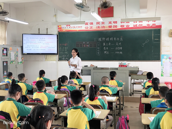 黃泳儀老師執(zhí)教二年級(jí)課文《植物媽媽有辦法》。課堂氣氛活潑,學(xué)生參與熱情高漲。教師語(yǔ)言具有感染力,教學(xué)流程明朗清晰,以靈活的教學(xué)方法感染了在場(chǎng)聽(tīng)課的師生,表現(xiàn)出了扎實(shí)的教學(xué)功底。不但讓學(xué)生掌握了語(yǔ)文知識(shí),還讓學(xué)生了解了植物傳播種子的自然常識(shí),激發(fā)了學(xué)生對(duì)大自然的熱愛(ài)。